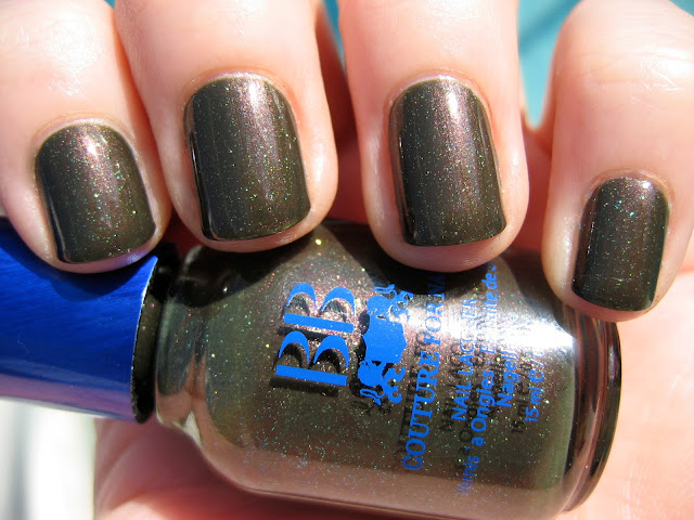This is three coats of BB Couture for Nails Eve. It's a groovy brownish olive with a pink duochrome.